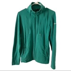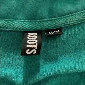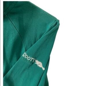 Green Roots full zip sweatshirt. Roots logo on the arm. Pockets. Drawstring collar. Nice amount of stretch. Excellent used condition.