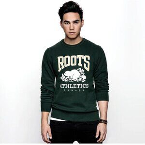 Selling ROOTS | green distressed logo crewneck Sweatshirt Sz SMALL.
