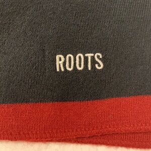 ROOTS winter scarf black with red trim 6.5” x 89” OS UNISEX