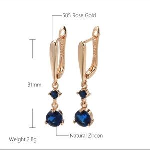 Long Blue Natural Zircon Vintage Drop Earrings, 585 Rose Gold Color Vintage Pendant Jewelry Luxury.