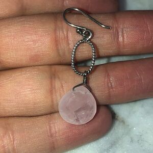 Rose Quartz Facet Cut Tear Drop Pear Dangle Silver Tone Dangle Earrings 1.7”