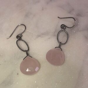 ROSE Quartz Facet Cut Tear Drop Pear Dangle Silver Tone Dangle Earrings 1.7”