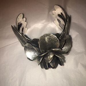 This stunner will turn heads anywhere you go. Vintage 3D rose. Don’t know what the metal is.