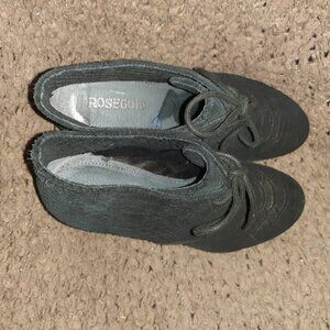 ROSEGOLD BRAND-Snakeskin Textured Black Suede Wedge Booties-Sz 37.5-Near Mint