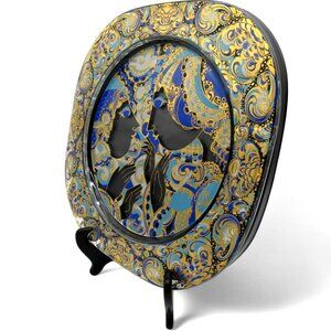 Crafted by Rosenthal and designed by Bjorn Wiinblad, 1977 this hand-painted glass / crystal plate features an attached hanger and detached plastic backing.