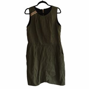 ROSS MAYER Linen Sleeveless Midi Sheath Dress Olive Green 14
