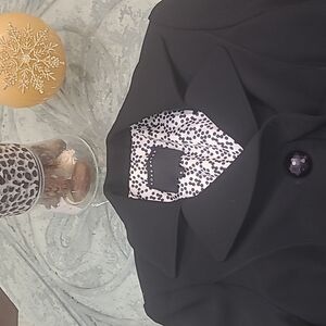 GORGEOUS BLACK DESIGNER BLAZER JACKET FEATUTING RUFFLED DESIGN, ACCENT BUTTONS, PADDED SHOULDERS, PIT TO PIT 17