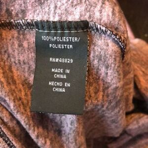 Pink and grey marbled cowl neck sweater with rounded hem and large front pocket