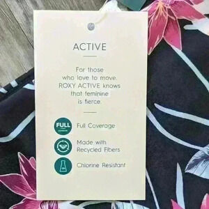 Nwt Roxy Floral Active Full Mid rise bikini bottoms. Soft, resistant stretch fabric, strappy details on each side, White Roxy label on back. 91% recycled nylon, 9% elastane. Waist 27-29", hips 38-39".