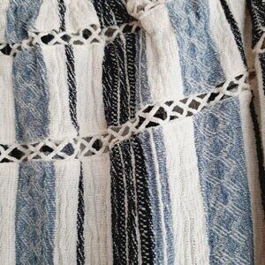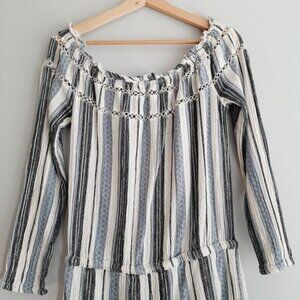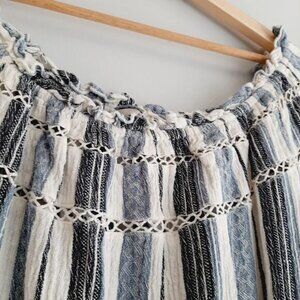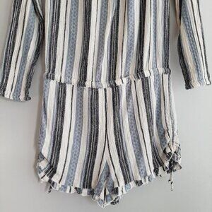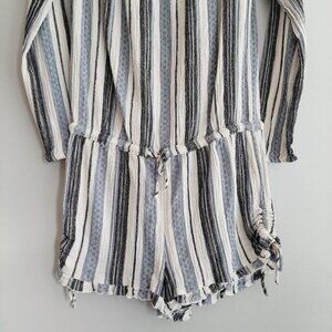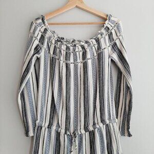 ROXY Anthem 100% Cotton Off-Shoulder Romper Blue Stripe Pattern Sz M