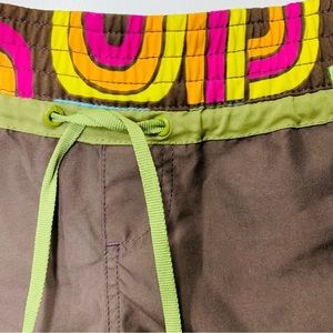 ROXY Brown Retro Colorful Festival Hot Pants Drawstring Shorts Sz 7