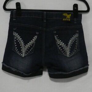 ROXY JEANS | size 26 | Denim Shorts | Rolled Bottom Hem | Stitched Back Pockets