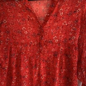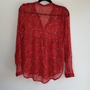 ROXY | Red Floral Sheer Long Sleeve Blouse Size XS