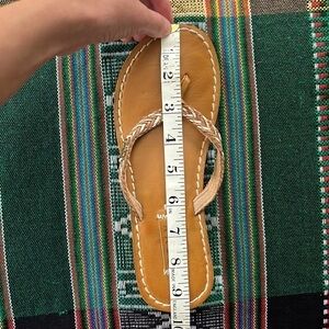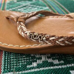 Roxy sandals that have a little wood heel on them. They are a size 6. Only worn once before.