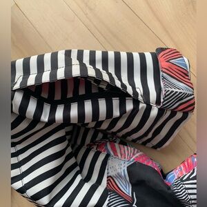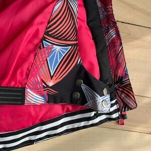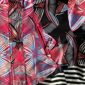 Stylish jacket with a vibrant geometric pattern. Features a mix of stripes and abstract designs. Perfect for a bold fashion statement.