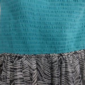 ROXY, medium, long dress, teal upper part, and black and white long skirt