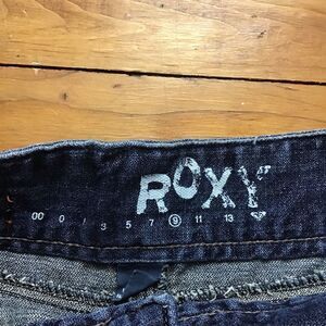 ROXY mini jeans skirt size 9 Sexy low rise dark blue stretchy denim side pockets