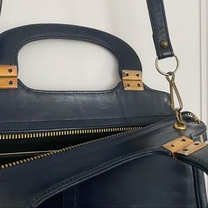 gorgeous rich, royal blue leather purse with handles, detachable shoulder strap & gold hardware