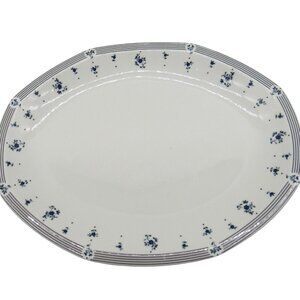 This elegant Royal Doulton oval platter features a delicate Calico Blue floral pattern on fine china.