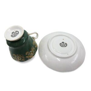ROYAL GRAFTON Teacup and Saucer Set Elegant Green Gold Floral Vintage