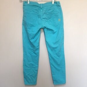 R&S Turquoise Low Rise Skinny Jeans Cropped Zip Hem Sz 26