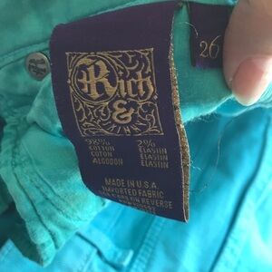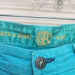 Rich & Skinny turquoise low rise skinny jeans zipper hem cropped