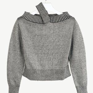 RTA Beckett Silver Metallic Off Shoulder Sweater
