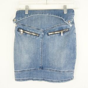 RTA Gisele Distressed Blue Denim Biker Moto Skirt