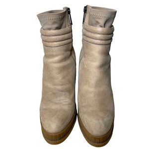 RUDSAK Ankle Heeled Booties Distressed Tan Leather Fleeced sz 38 Winter Boots