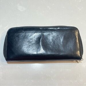 RUDSAK Wallet, Lamskin Leather Wallet, Black Leather Accessories, Chic Preloved Wallet, Women’s Designer Wallet, Silver Hardware Wallet, Functional Cardholder.