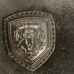 Elegant black leather patch with embossed RUDSAK logo. Features intricate detailing.very good used Condition