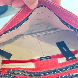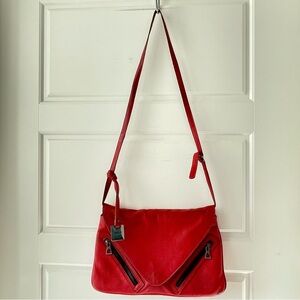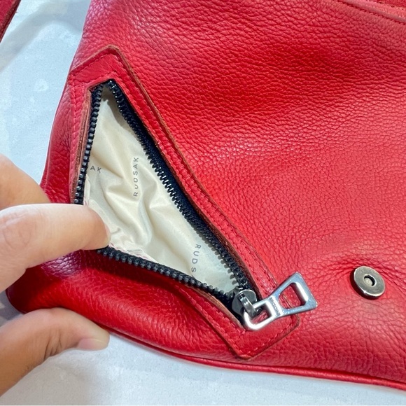 Elevate your style with this Rudsak Pebbled Red Leather Crossbody Bag/Handbag. Crafted from high-quality pebbled leather, this bag boasts a timeless design with a chic edge. Featuring two stylish zippered accents on the front for a trendy look, it perfectly complements any outfit, from casual outings to formal events.