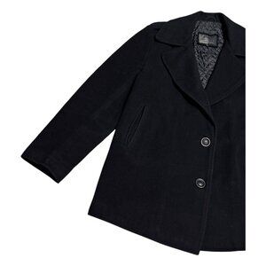Wrap yourself in the epitome of warmth and style with the RUDSAK Wool & Cashmere Luxury Designer Coat. A versatile addition to your wardrobe, this mid-length pea coat in a timeless black is suited for a variety of occasions, from business meetings to casual outings, and even sophisticated evening events. Tailored to fit a women's size large, the coat offers a comfortable regular fit with practical pockets and a secure button closure.