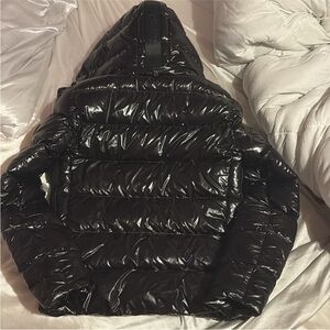 Stay warm and stylish with this sleek black puffer jacket. Perfect for chilly days.