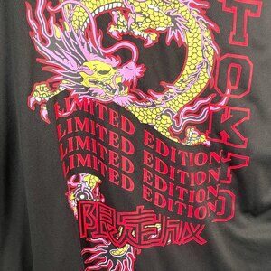 🍂🍁 RUE21 Tokyo Baseball Shirt Woman's LARGE Dragon Black Red Pink NEW