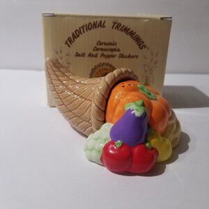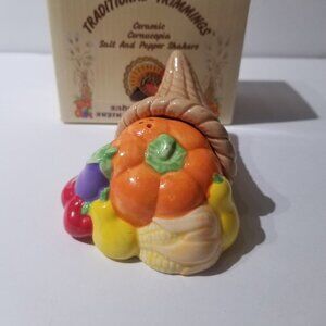 RUSS Cornucopia Thanksgiving Salt & Pepper Shaker set w/original box Russ #15603