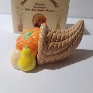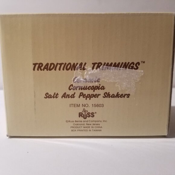 RUSS Cornucopia Thanksgiving Salt & Pepper Shaker set w/original box Russ #15603