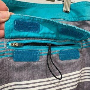 RVCA Classic Non-Stretch Board Shorts Size 36 Blue and Grey Striped