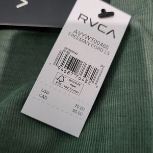 RVCA Freeman Cord Green Long Sleeve Size Small