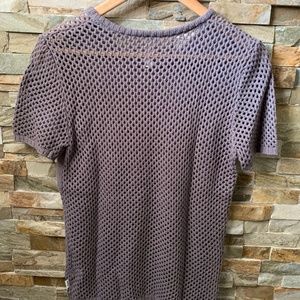 Really cute knit sweater with mesh features on front and back. Solid knit across chest area.