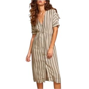 RVCA model button shirt dress, XS, cream & black lined vneck Earth Girl, Coastal
