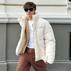 Stylish white jacket by Schott NYC. Features a zip-up front and embroidered logo.