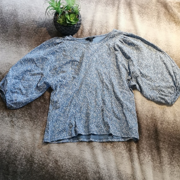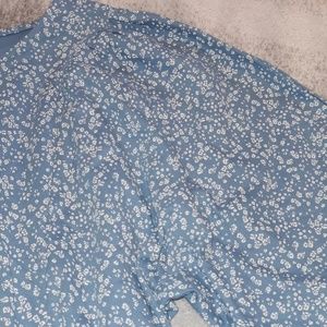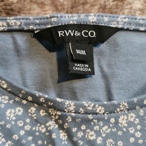 Medium RW & CO blue with white flowers detail. elastic arm sleeves, excellent condition.