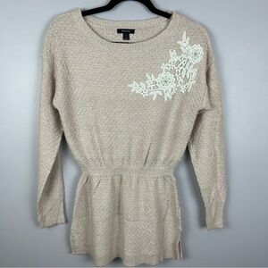 RW & CO Floral Embroidered Cinched Waist Tunic Sweater XS Cream