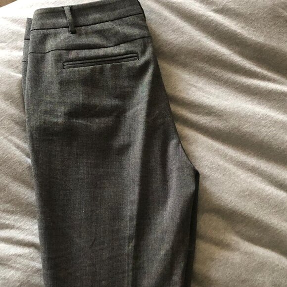 Pleated women's trouser cropped to ankle length, perfect for corporate setting (business casual or formal), or dressing up a more casual outfit. Thicker trouser perfect for upcoming fall or winter season. Features front and back pockets and made with woven grid pattern. Worn once inside as was not the right size for me, and in pristine (perfect and without tags) condition.