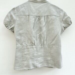 RW & CO Women’s Vintage Grey Jacket Short Sleeve Ruffled Collar 100% Ramie Large