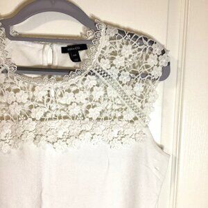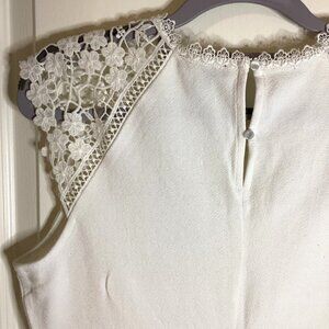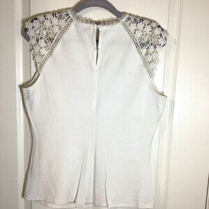 RW & CO Women's White Sleeveless Crochet Lace Trim Top Blouse Size M
