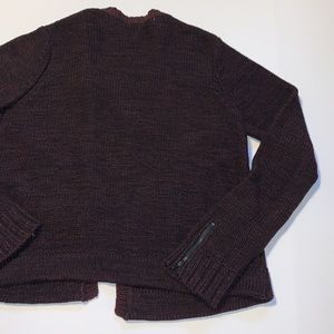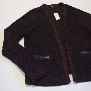 New with tag RW & Co maroon and black sparkly open front cardigan with zippered pockets in women’s size extra large (XL).
