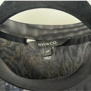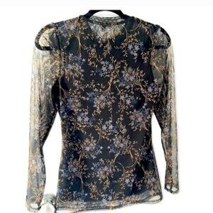 RW & Co. Mesh Flower Print dark blue longsleeve top
