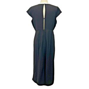 RW & Co Midi Dress Womans Size 14 Black Cap Sleeve Keyhole Back Front Slit Party
